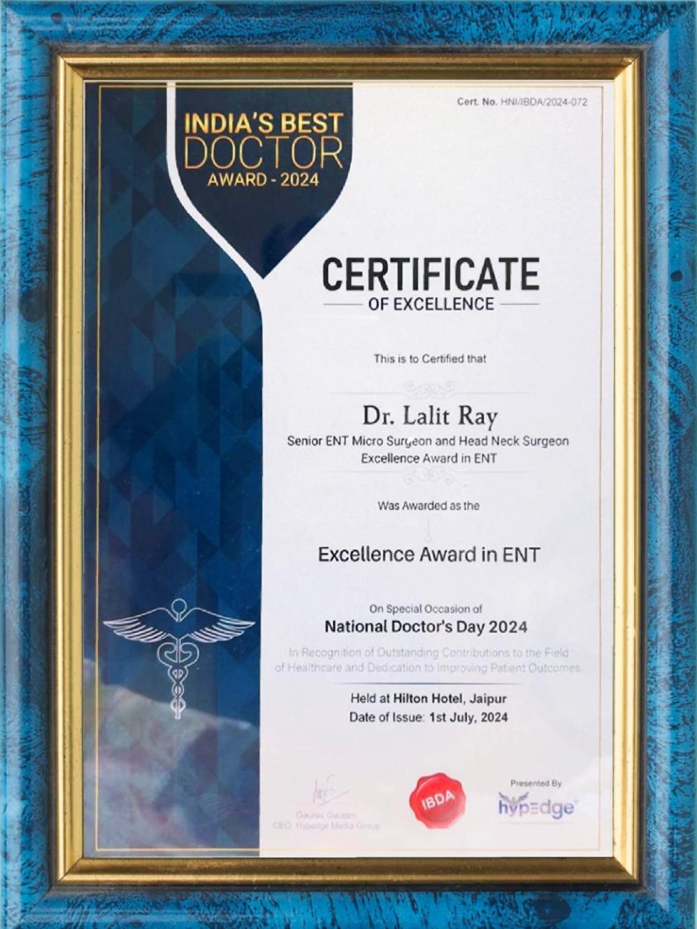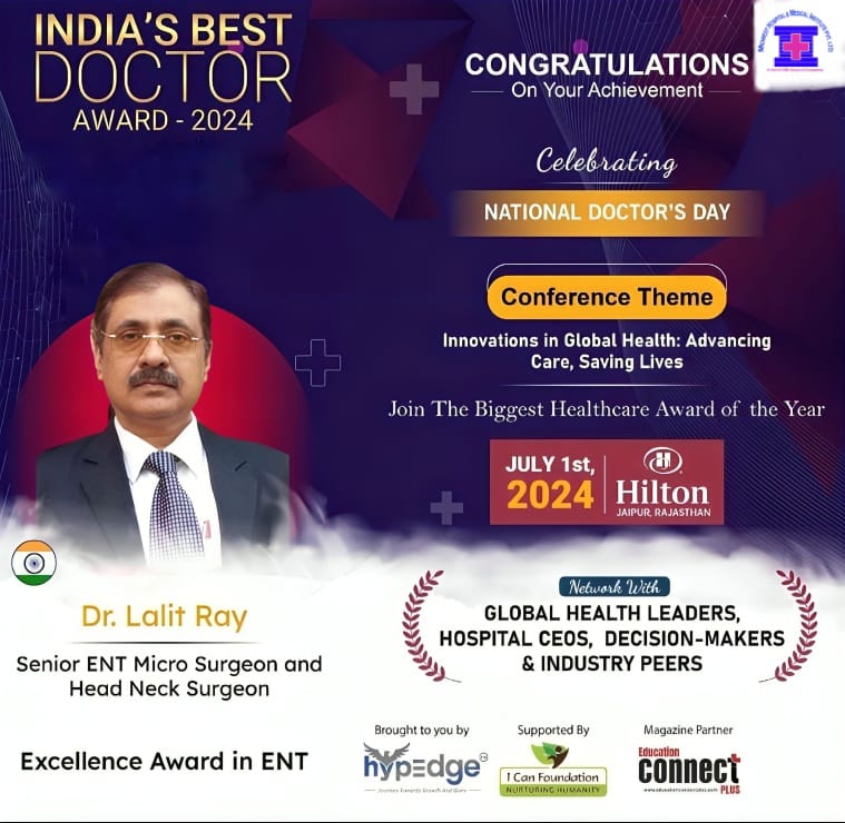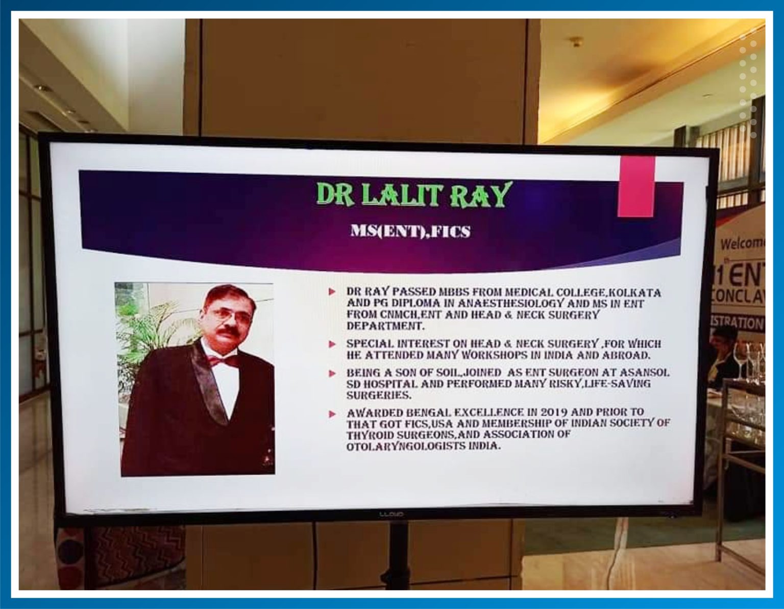 Dr. Lalit Ray: Pioneering excellence in ENT Care with a distinguished career spanning 3 decades, Dr. Lalit Ray stands as an authority of expertise and commitment in the field of Ear, Nose, and Throat (ENT) microsurgery. Renowned for his exceptional skills and extensive knowledge with many publications in National and International ENT Journals, Dr. Ray has dedicated his life to providing excellence and advancement the field of ENT surgery. Holding a Master of Surgery (MS) in ENT and earning Fellowship of the International College of Surgeons (FICS) in the USA, Dr. Ray has earned his place as a Senior ENT Surgeon and Head Neck Surgery in West Bengal .He has been awarded Bengal ExcellenceAward 2019 for advancement in Medical Science and is Member of Indian Society of Thyroid Surgeons and Association of Otolaryngologist of India.He was awarded INDIA’S BEST DOCTOR 2024 on National Doctors Day.